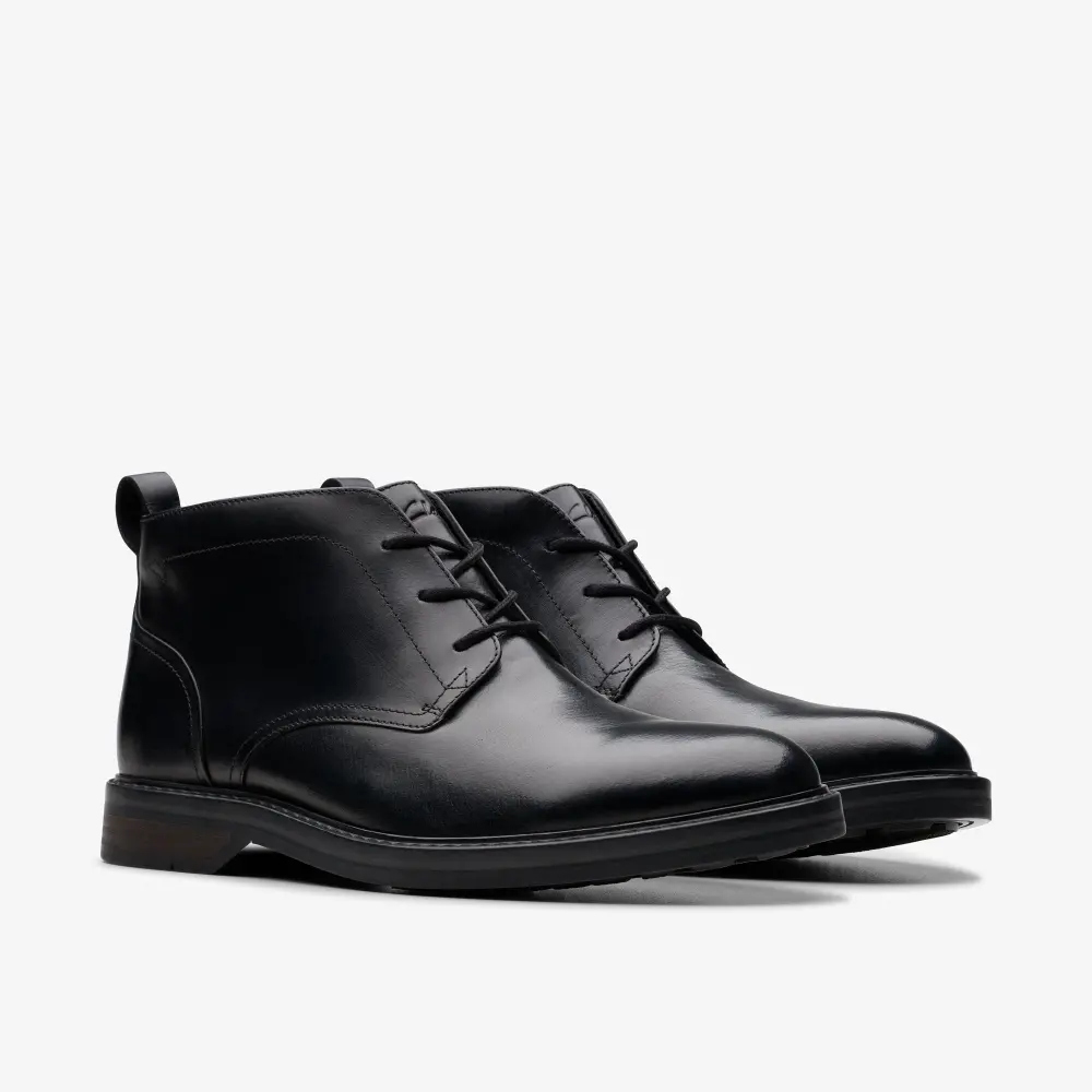 Der Aldwin Chukka ist ein hochwertiger Stiefel, der sich sowohl elegant als auch lässig stylen lässt. Er vereint erstklassige Ästhetik mit dauerhaftem Tragekomfort und modernen Designdetails. Elegantes Leder in klassischem Schwarz trifft auf das charakteristische Fußbett und die griffige Sohle – so fühlt sich jeder Schritt so gut an, wie er aussieht. Traditionelle Ziernähte und ein mehrlagiger Absatz runden den Look im zeitgemäßen Stil ab.