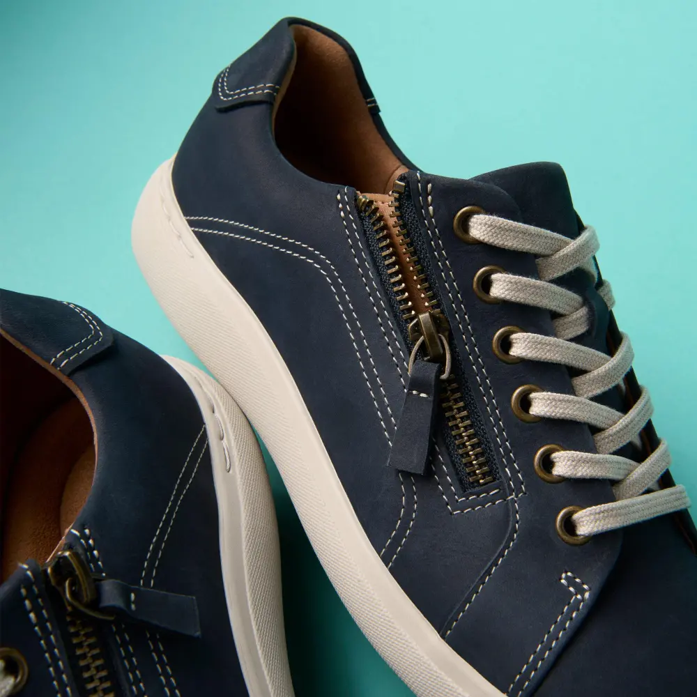Mit dem Nalle Lace genießen Sie ein federleichtes Tragegefühl. Das geschmeidige Obermaterial aus marineblauem Nubukleder vereint sportlichen Stil mit der legendären Handwerkskunst von Clarks und macht diesen modernen Sneaker zum idealen Begleiter für einen aktiven Lebensstil. Das stützende Contour Cushion-Fußbett und die griffige Gummisohle sorgen für optimalen Tragekomfort, auch an anstrengenden Tagen.