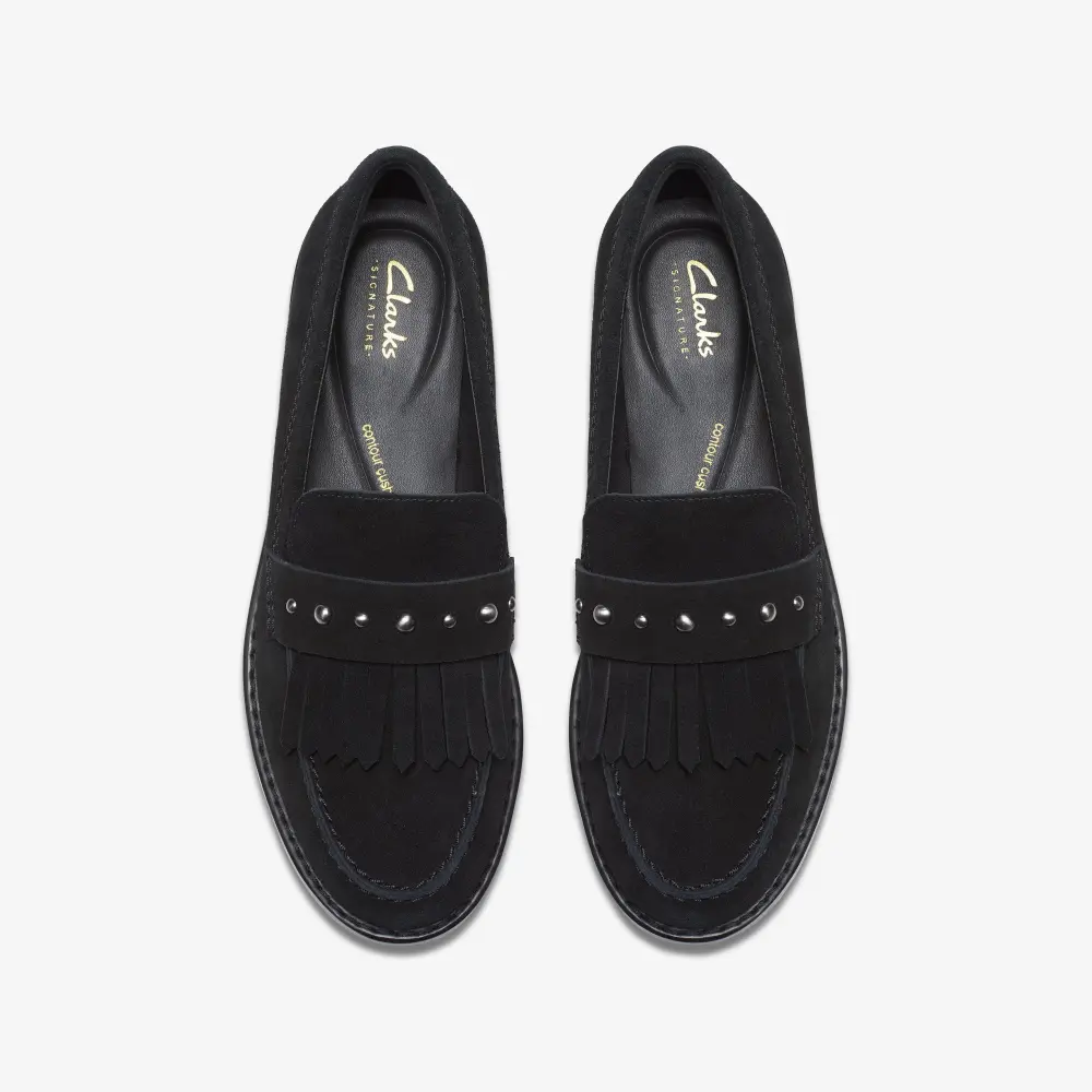 Der elegante Hana Loafer vereint weiches Wildleder mit Ziernieten und trendigen Fransen zu einem modernen, hochwertigen Look, der jedes Outfit aufwertet. Unsere charakteristische, ledergefütterte Polsterung sorgt zusammen mit der flexiblen Sohle und dem praktischen Slip-on-Design für optimalen Tragekomfort.