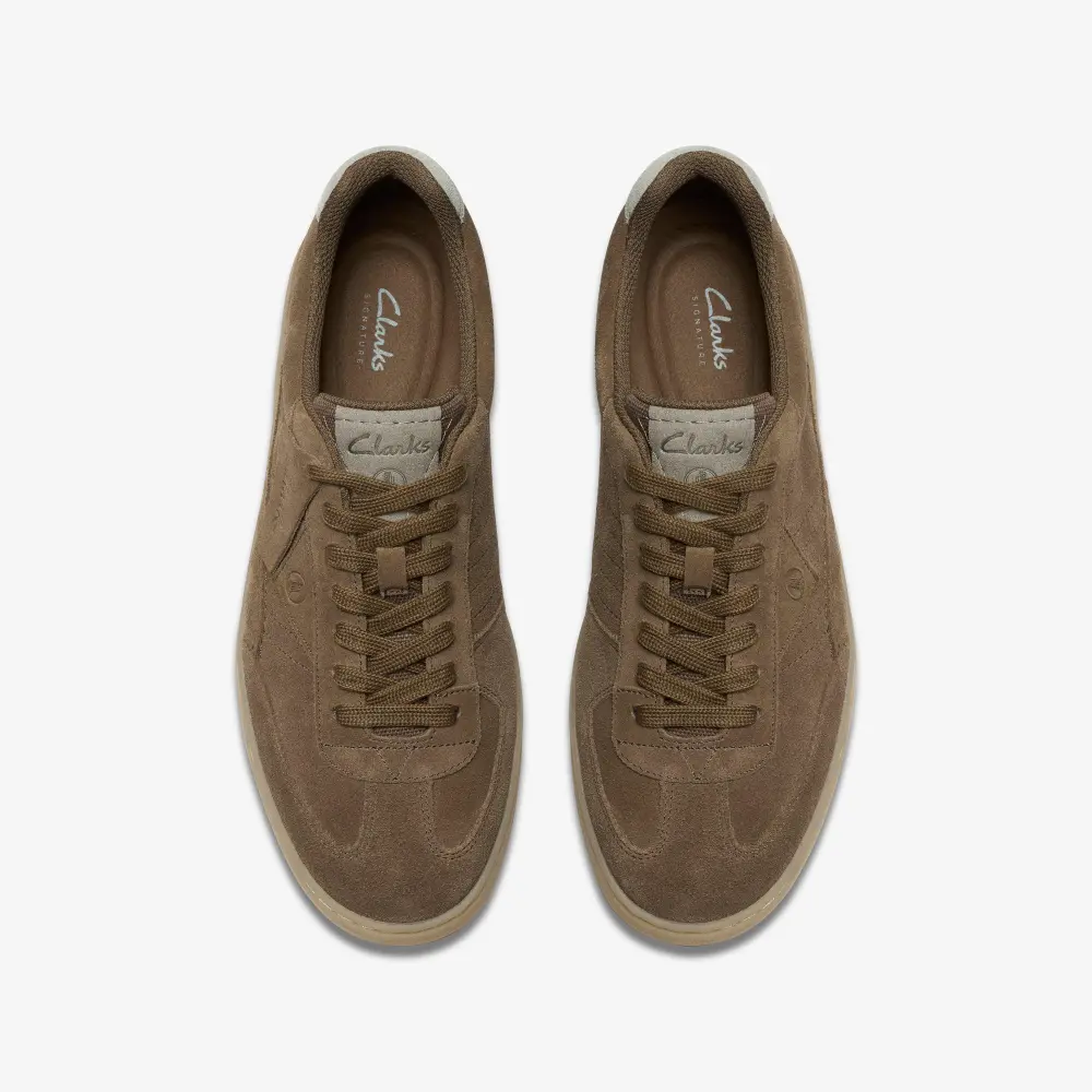 - Das Obermaterial aus Khaki-Wildleder mit gestepptem Textil bietet ein weiches, atmungsaktives Tragegefühl.