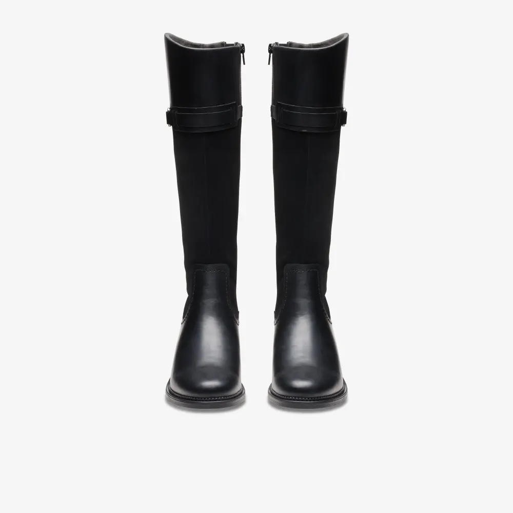 Genießen Sie mühelose Eleganz mit den Maye Carly Stiefeln. Dieses Modell mit hohem Schaft beweist, dass es auf die Details ankommt. Der klassische Stil zeichnet sich durch einen abgerundeten Schaftrand, eine Konstruktion aus zwei Materialien, einen trendigen Blockabsatz und ein goldfarbenes Zierelement aus.