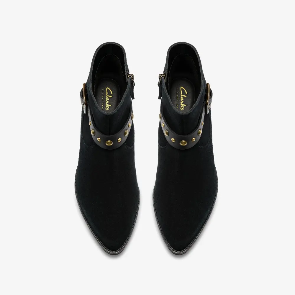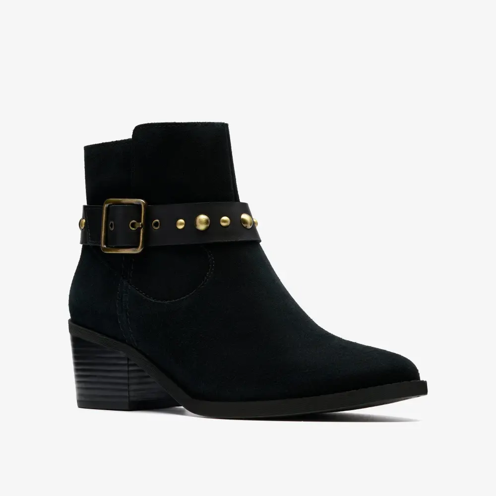 Home / Shop / Morzine Damen-Ankle-Boots aus schwarzem Wildleder mit Schnalle