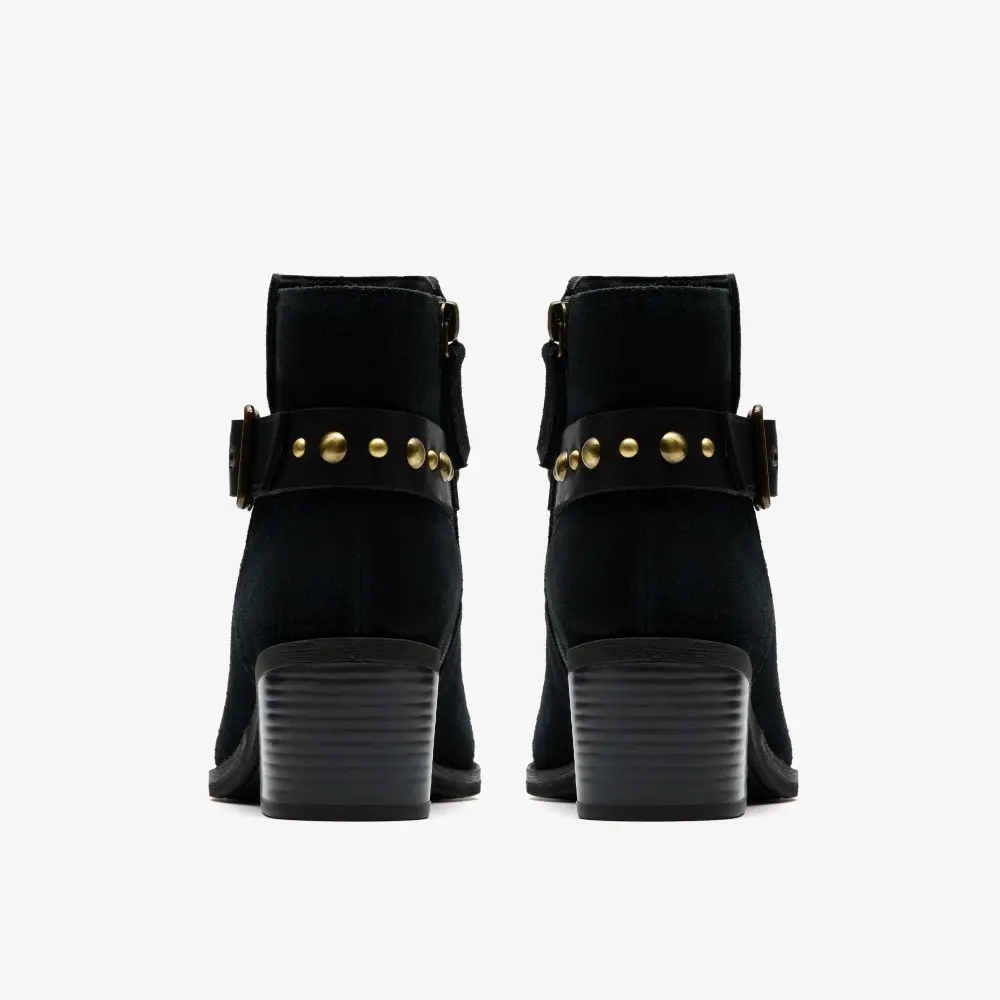 Morzine Damen-Ankle-Boots aus schwarzem Wildleder mit Schnalle