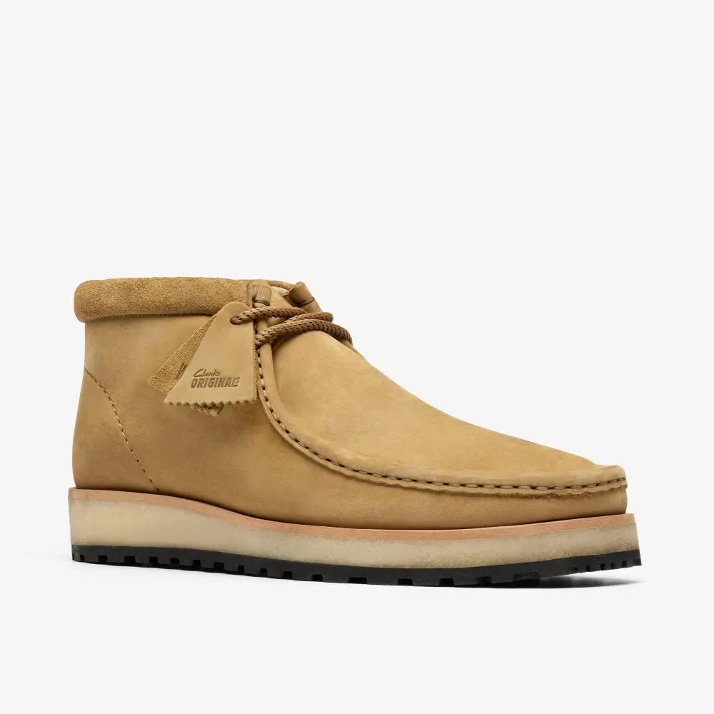 Der Schuh verfügt außerdem über zwei markante Logos – Clarks Originals und Wallabee™ – und wird durch das Clarks Originals-Logo auf der Socke abgerundet, das seine authentische Herkunft unterstreicht.